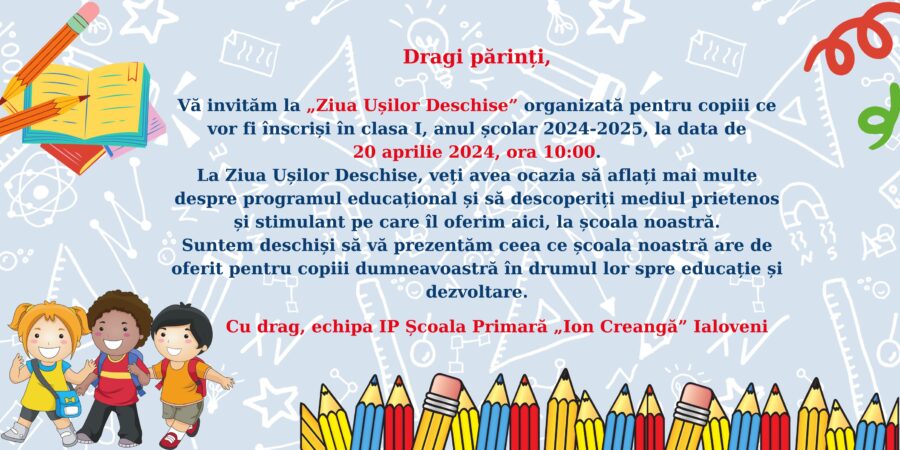 Anunț! Înscrierea copiilor în clasa I, etapa I